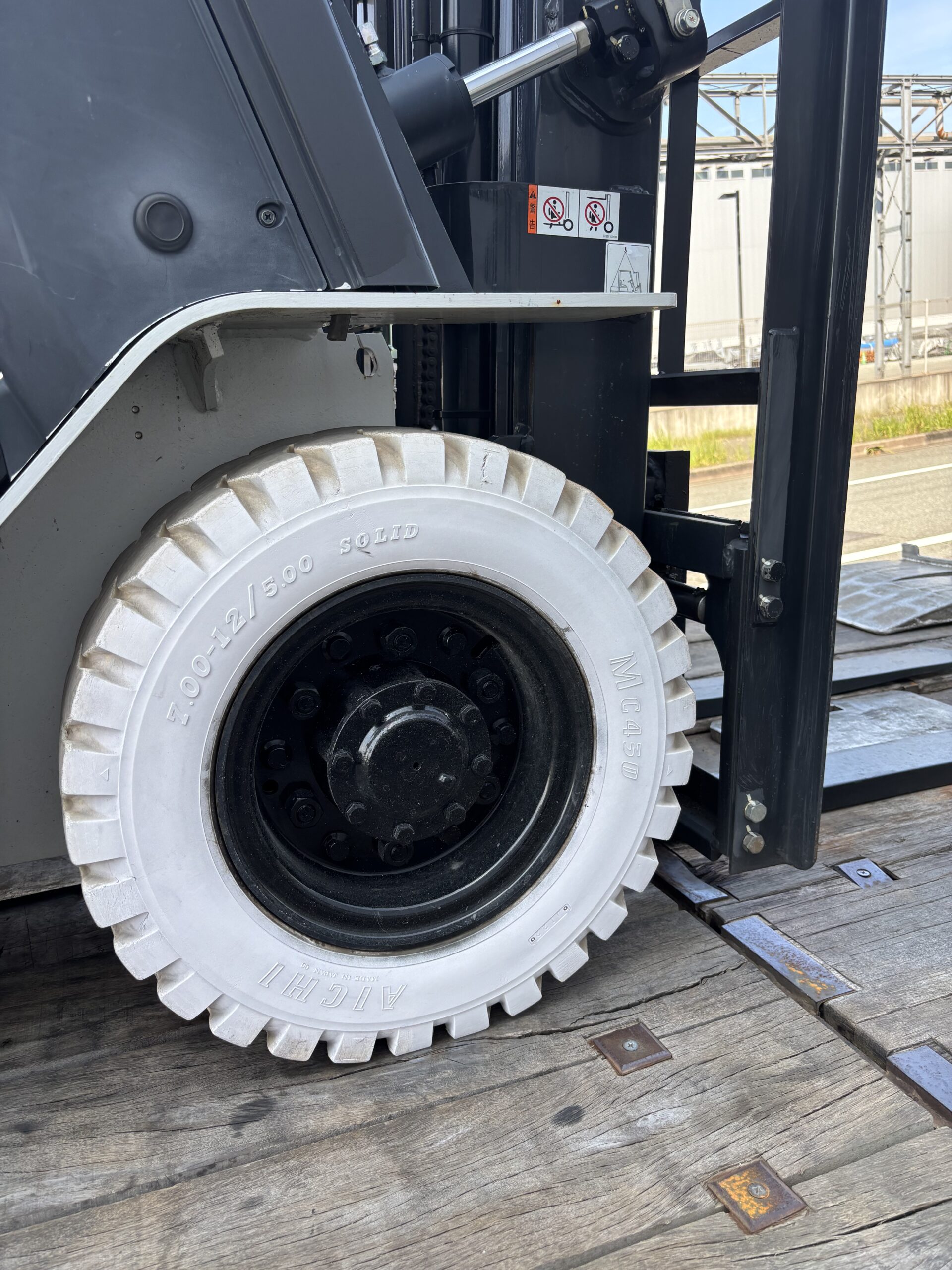 お客様から「あのフォークリフトのタイヤは何で白いの?」と聞かれる事があります。