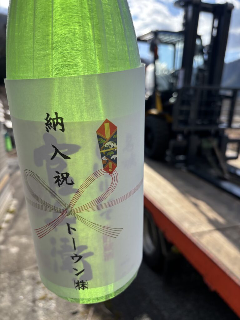 弊社では、納車セレモニーの際に安全祈願の【清酒】を贈呈させて頂いております。